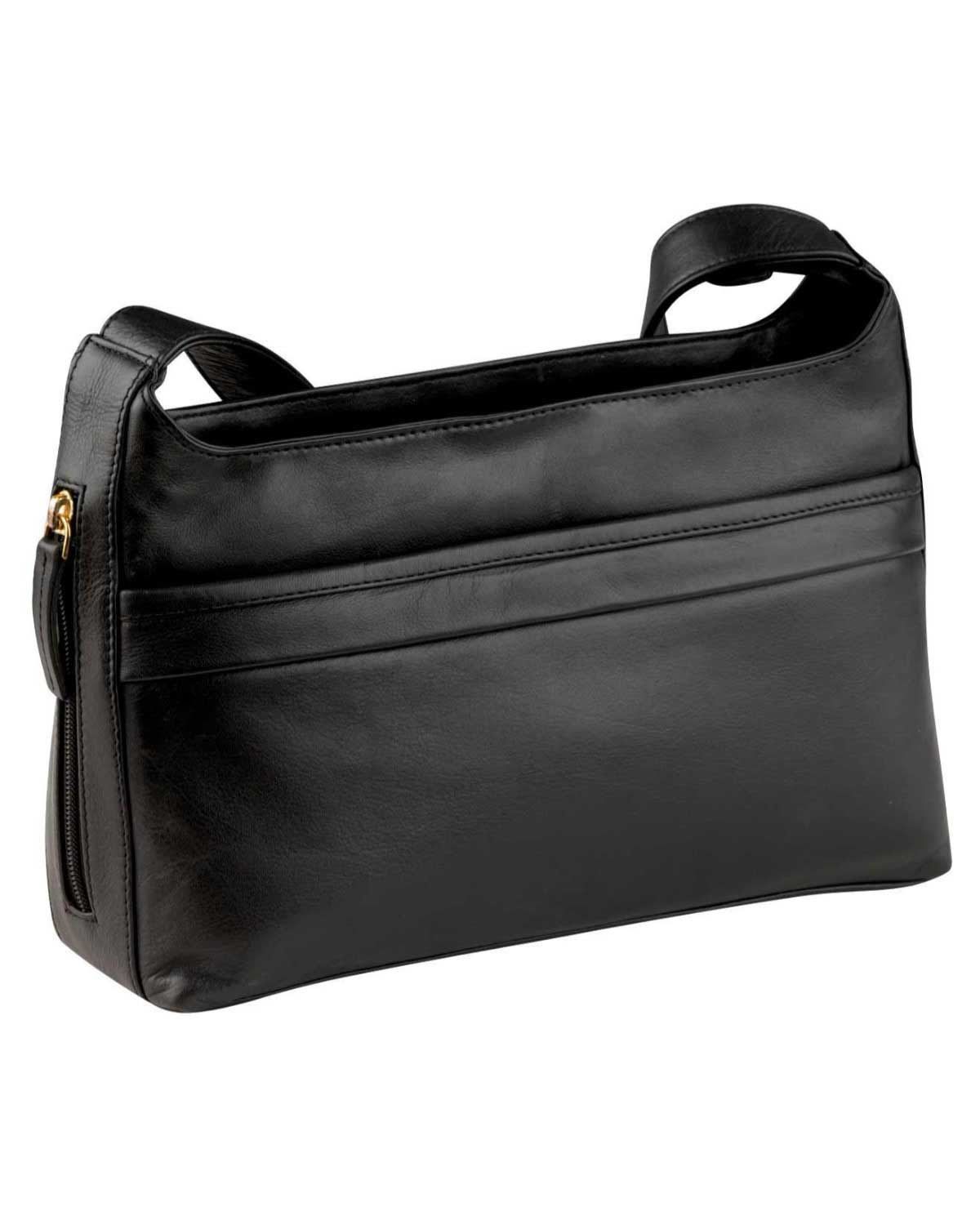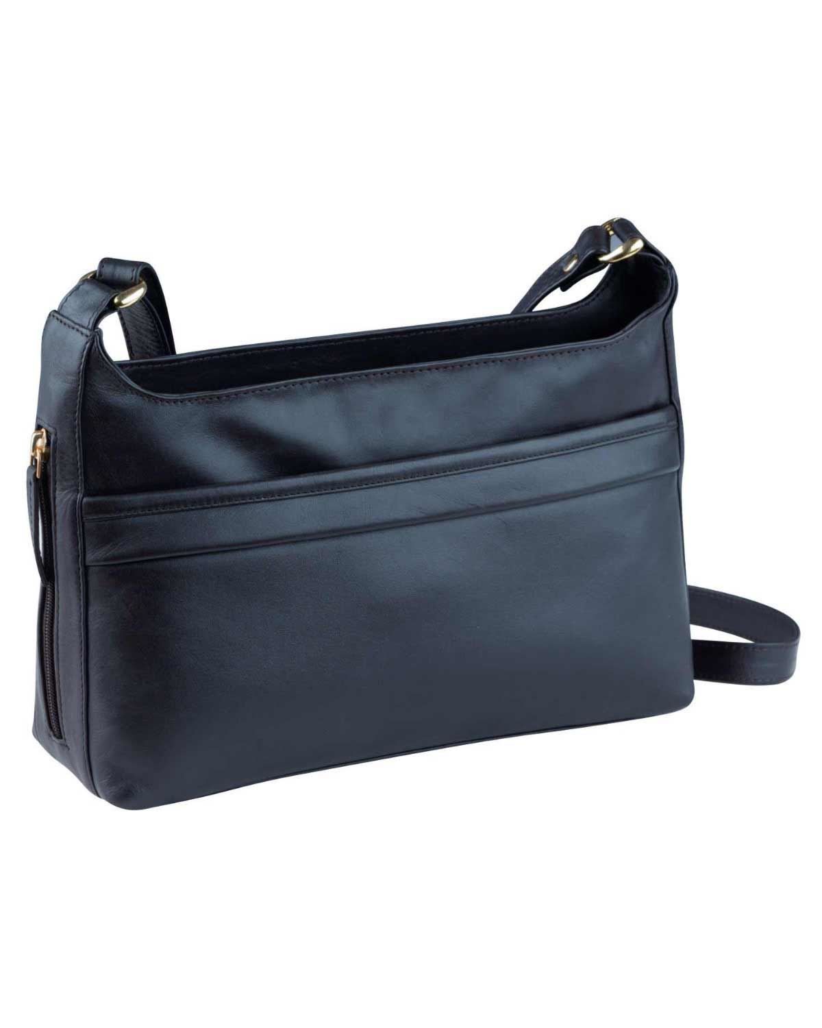Leather Zip top handbag with adjustable strap. Magnetic clasp fastening to front. Inner pockets with key fob and side zipped pocket.