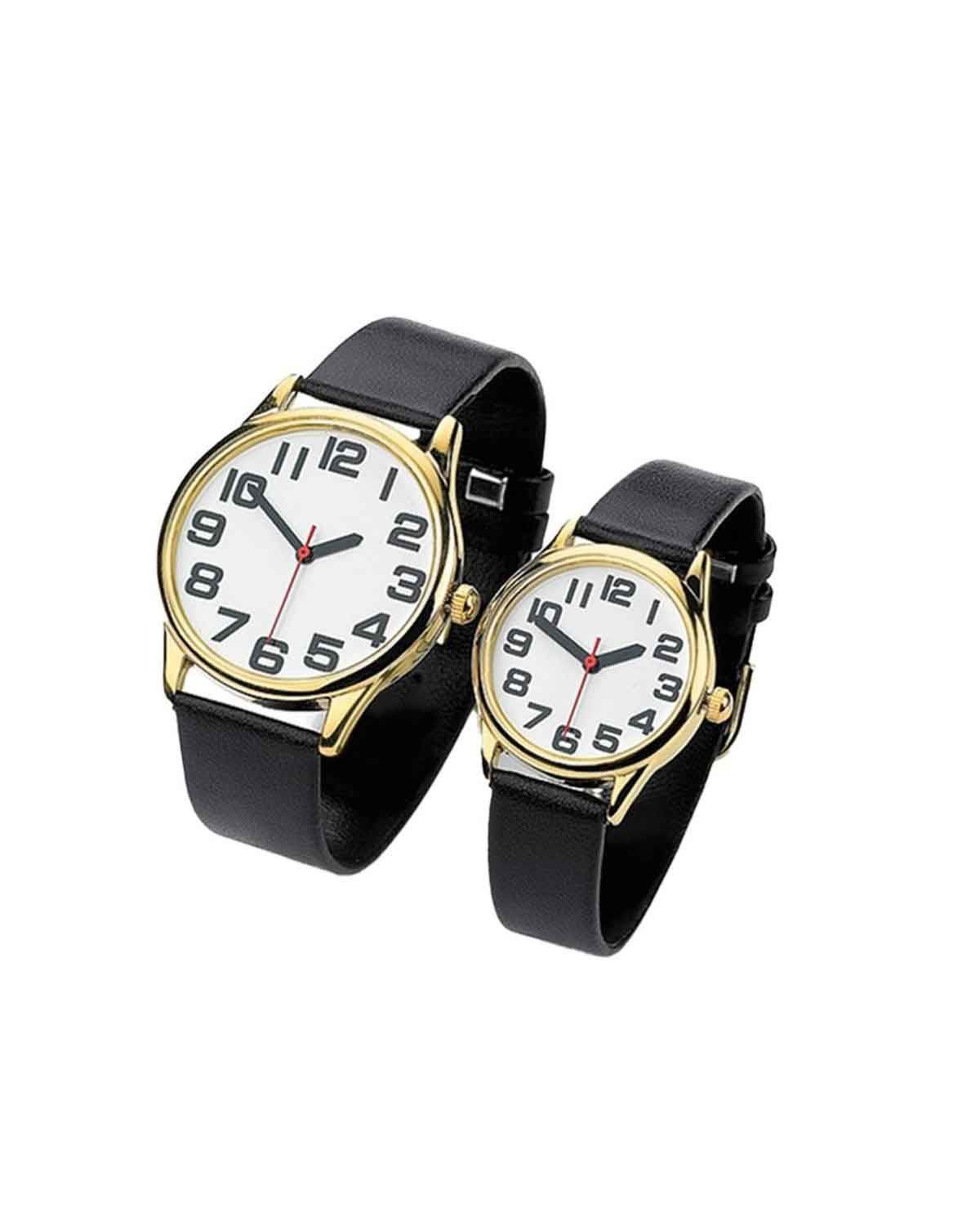 This classic-style large timepiece offers a clear view with bold black print on a white background for easy readability. Featuring a sleek leather strap, it’s perfect for both ladies and gents who appreciate a watch designed for clarity.