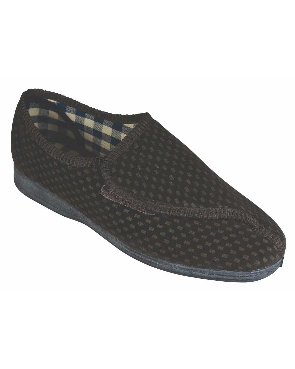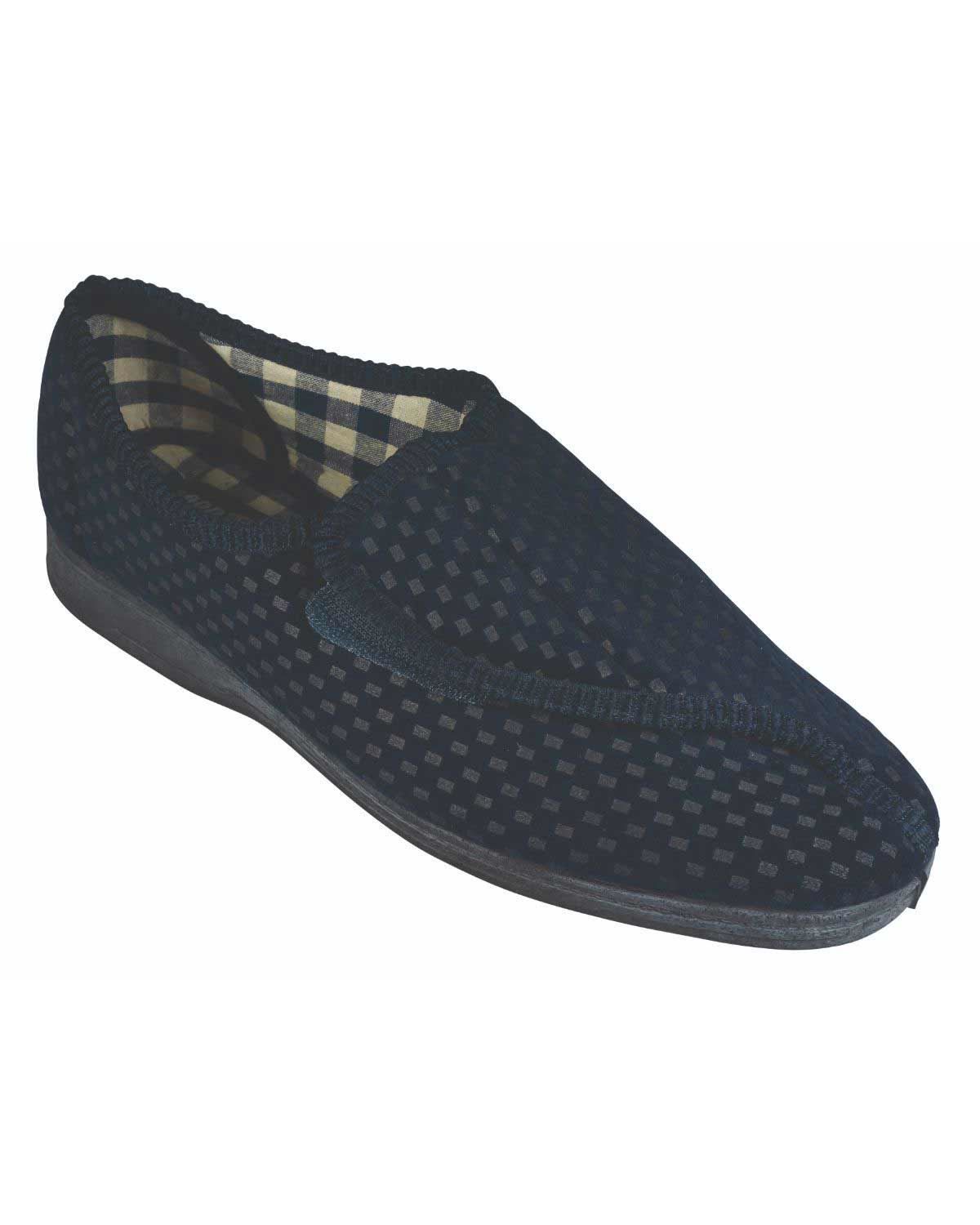 Soft and durable slippers with tartan textile lining, the textile uppers feature a checked upper and easy one strap riptape fastening.