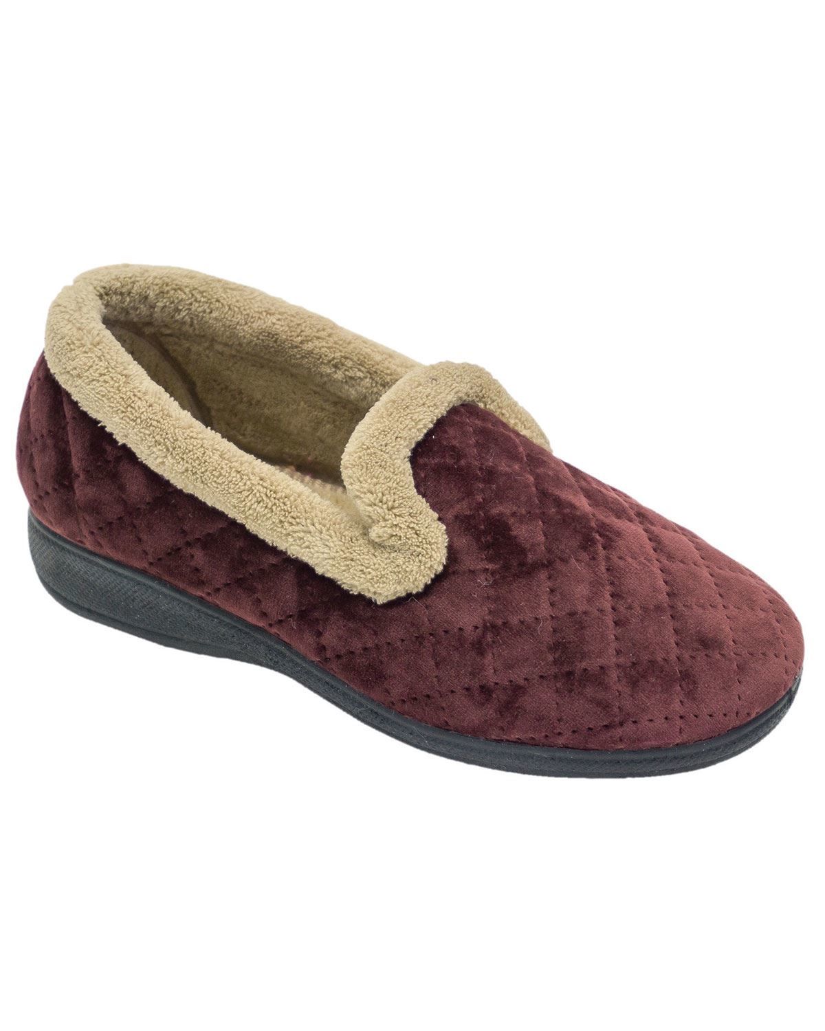 Ladies memory foam insole and man-made sole Cosy slipper. Fur lined for extra warmth.