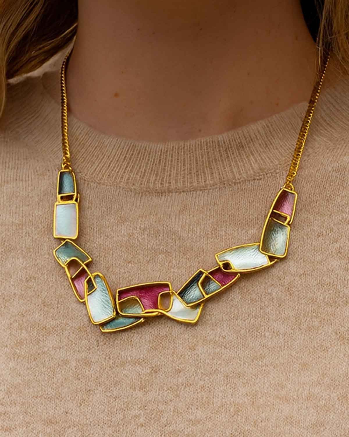 Add a playful pop of colour with this Multicoloured Enamel Design Necklace on a Gold-Tone Chain. Clasp fastening with adjustable extension.