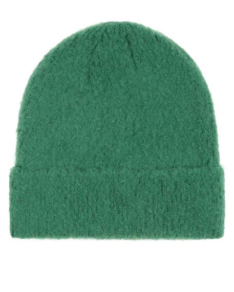 Stay cozy and effortlessly cool with this Green Wool-Blend Knitted Beanie Hat. One Size. 70% acrylic 30% wool.