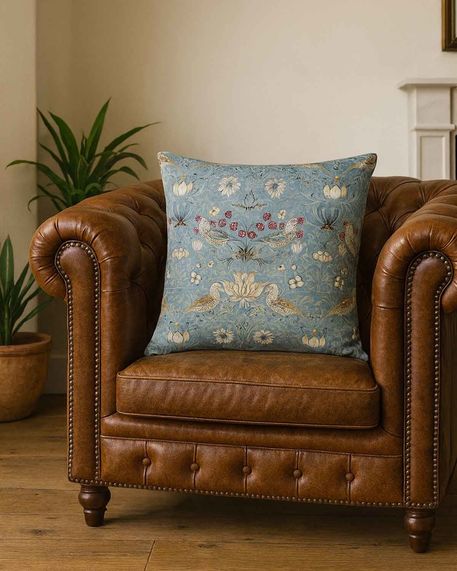 Elevate your living space with these pure cotton printed cushions, available in the timeless Strawberry Thief, Golden Lily, and Tree of Life designs.