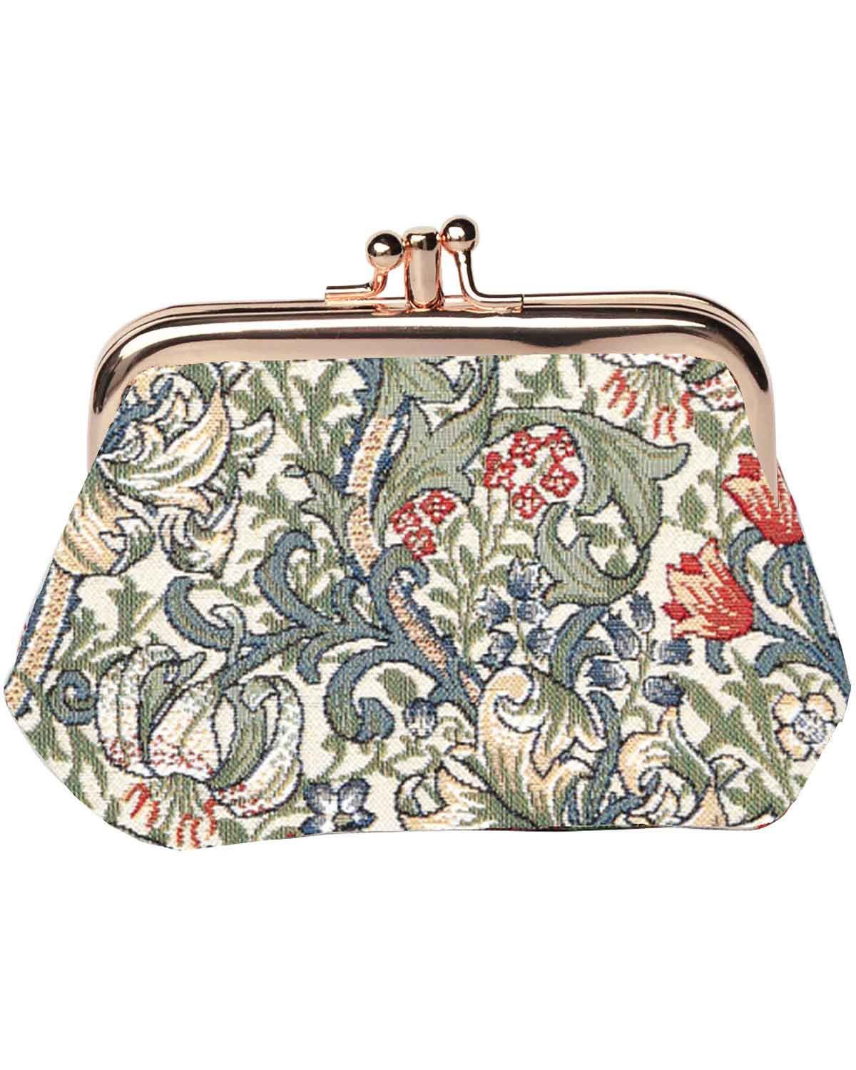 Keep your essentials secure in style with this Tapestry Pocket Kiss Lock Coin Purse, featuring elegant woven designs and a vintage-inspired clip fastening.